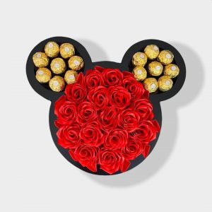 From a concept to a reality. Mickey shaped box filled with handmade satin roses and Ferrero Rocher chocolates. Great gift ideas for any occasion.